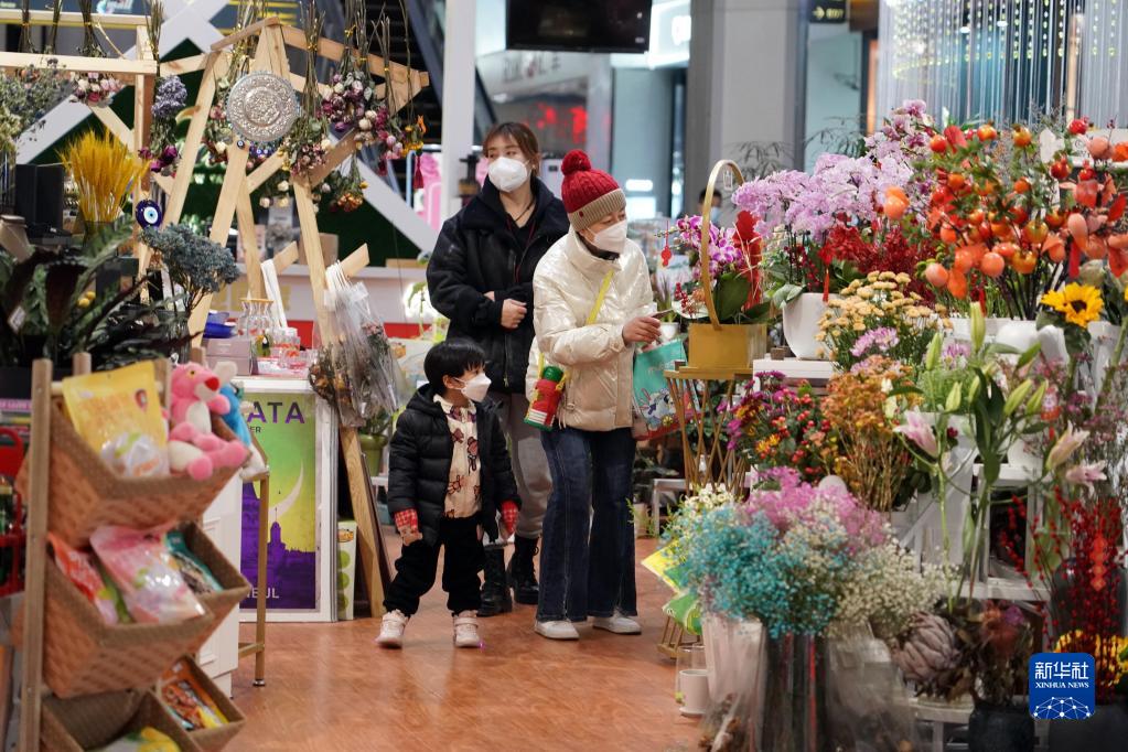 1月1日,顧客在北京世紀金源購物中心挑選鮮花。