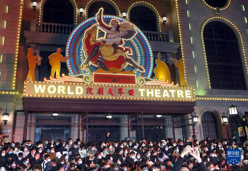 游客在位于鄭州市中牟縣的電影小鎮觀(guān)看表演(2022年12月31日攝)。