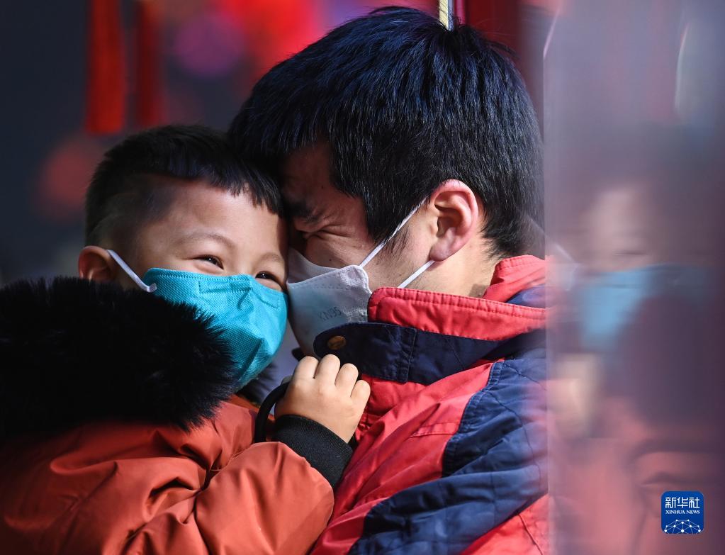 2022年12月31日,在大唐不夜城步行街,一對父子在購買(mǎi)棉花糖時(shí)親密互動(dòng)。
