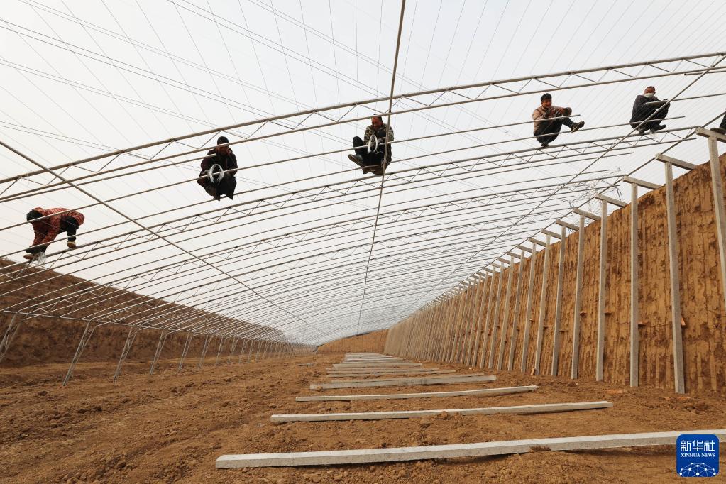 1月1日,河南省焦作市溫縣張羌街道馬莊村村民在建設溫室大棚。