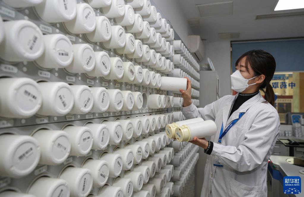 1月1日,江蘇省淮安市第三人民醫院中醫師孫樹(shù)桃在調劑中藥。