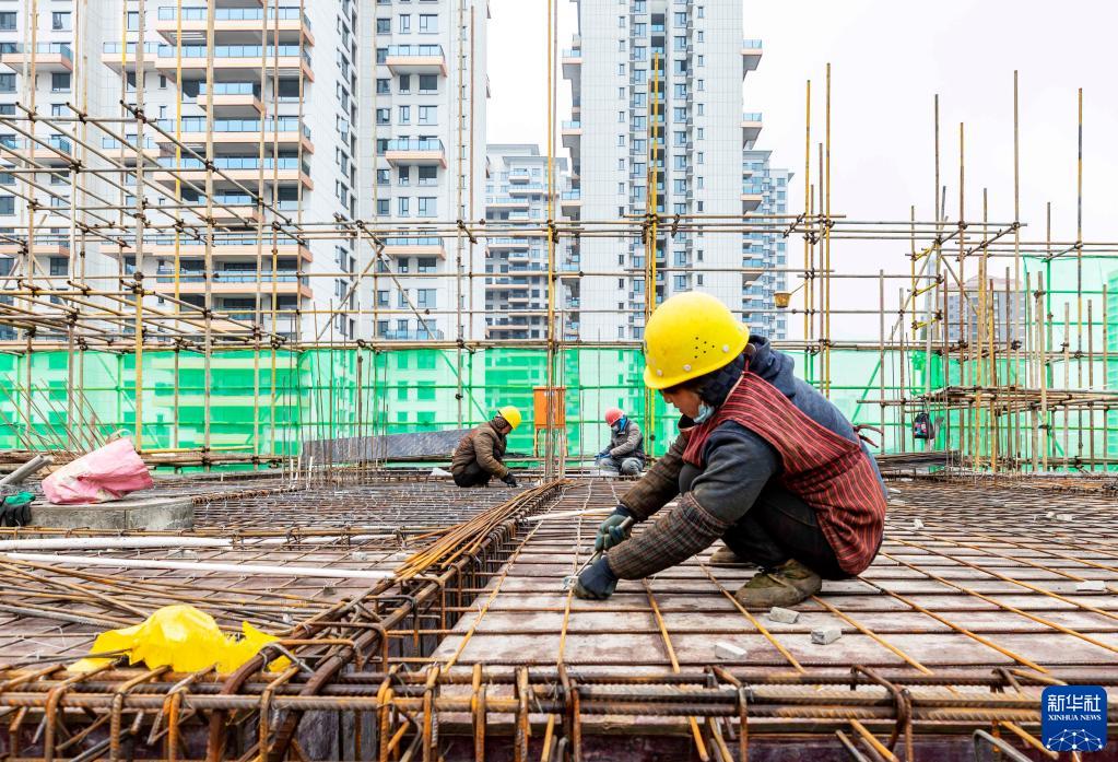 1月1日,建設者在貴州省黔西市一建筑工地施工。