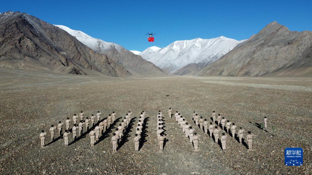 1月1日,正在藏北高原無(wú)人區駐訓的新疆軍區某紅軍團在雪山腳下組織官兵使用無(wú)人機舉行升國旗儀式。