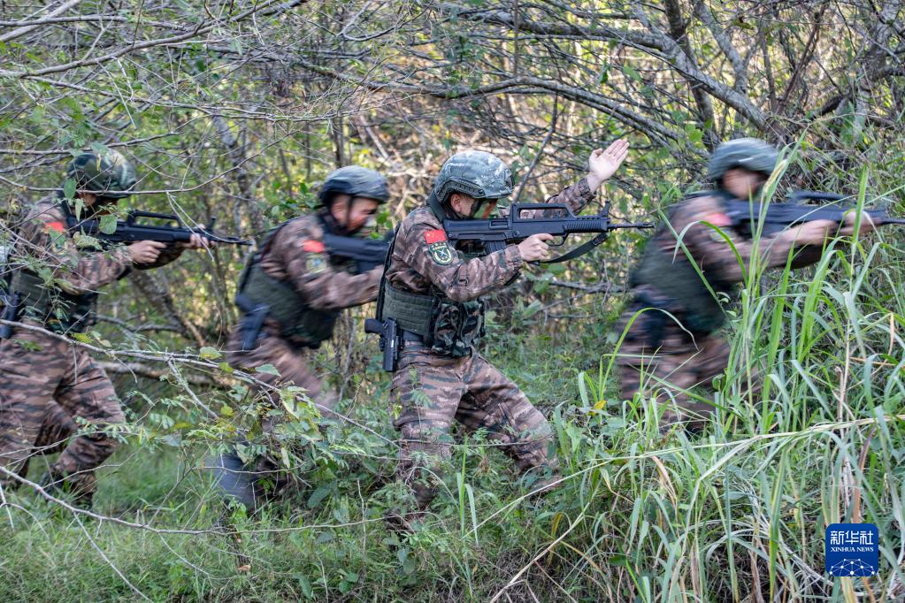 1月1日,武警廣西總隊防城港支隊組織特戰隊員進(jìn)行捕殲戰斗演練。