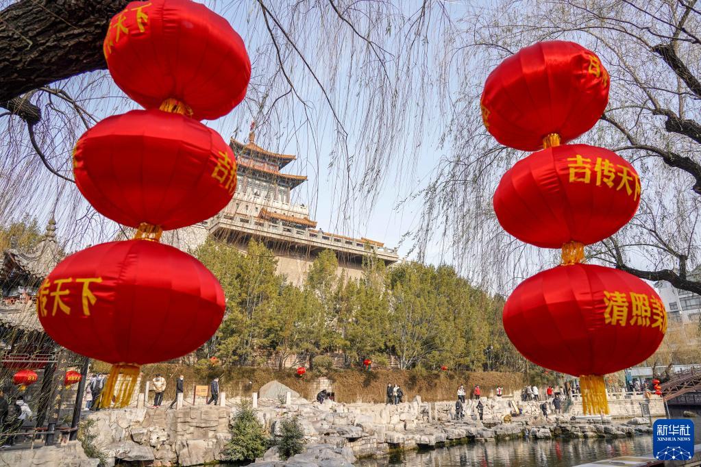 1月1日,游客在山東濟南天下第一泉風(fēng)景區白石泉畔賞泉觀(guān)景。