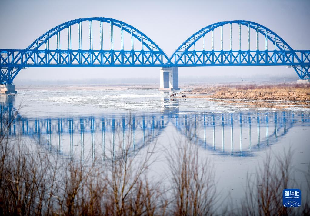 2023年1月2日,幾頭牛在位于寧夏銀川市境內的黃河邊喝水。