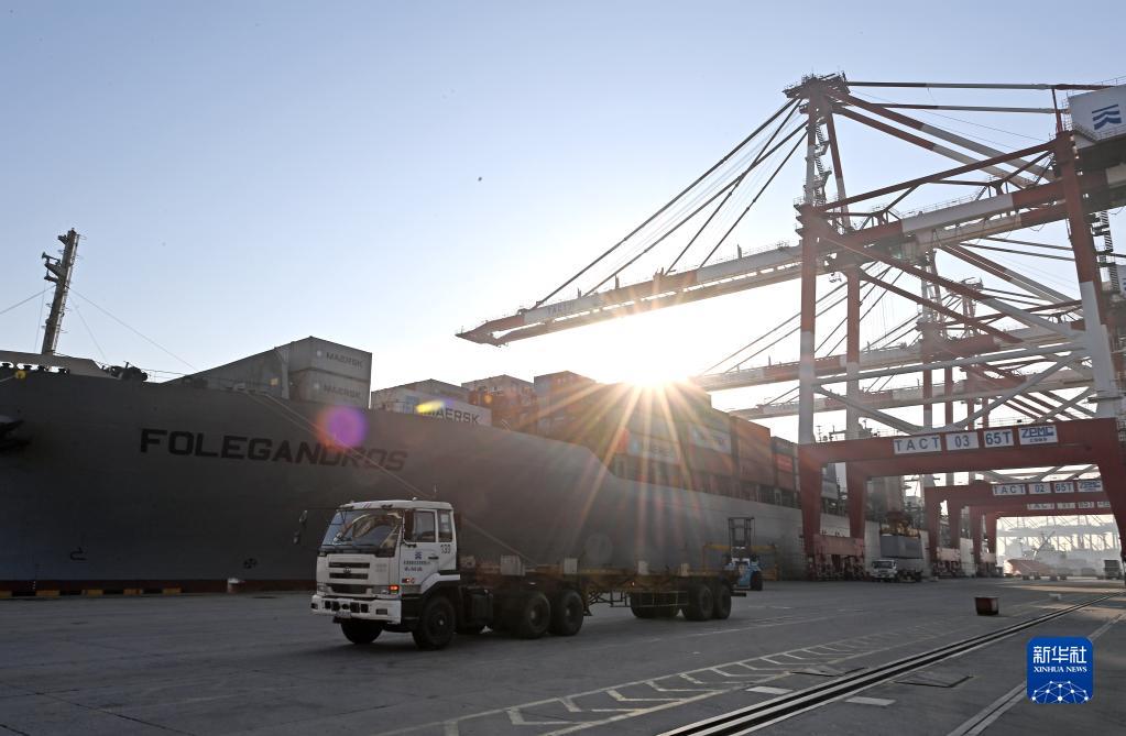 新年伊始,天津港各碼頭有序高效運行,卡車(chē)在集裝箱堆場(chǎng)往來(lái)穿梭,岸橋高效運轉裝卸船舶,一派繁忙景象。元旦假期期間,天津港聯(lián)盟國際集裝箱碼頭預計靠離船舶9艘次,作業(yè)箱量超1.5萬(wàn)標箱,涉及大洋洲、東南亞等重點(diǎn)航線(xiàn)。