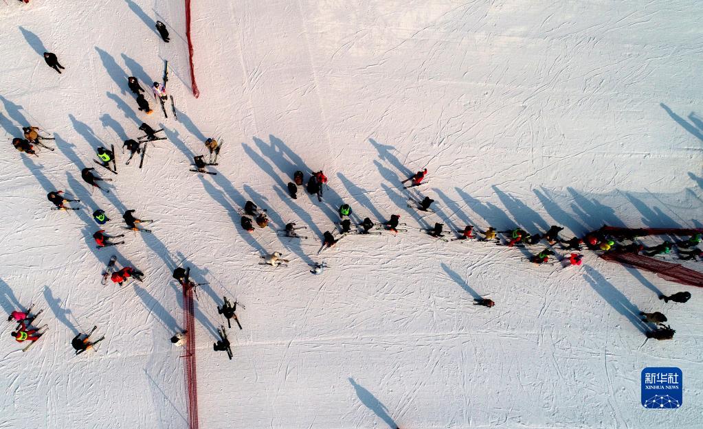 1月2日,游客在河北省石家莊市西部長(cháng)青冰雪小鎮滑雪游玩(無(wú)人機照片)。