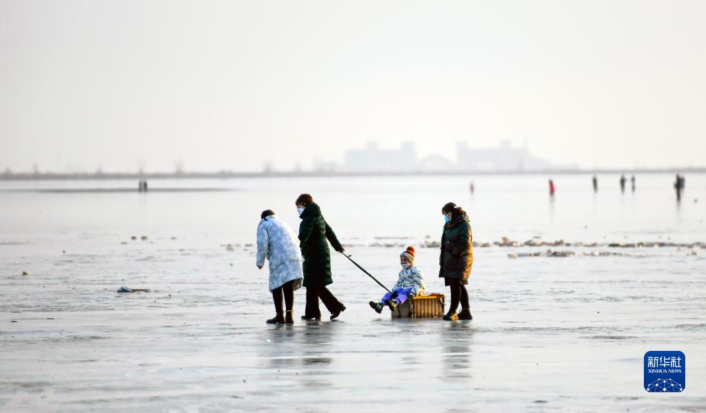 1月2日,游客河北唐山海港經(jīng)濟開(kāi)發(fā)區海灘的冰面上游玩。