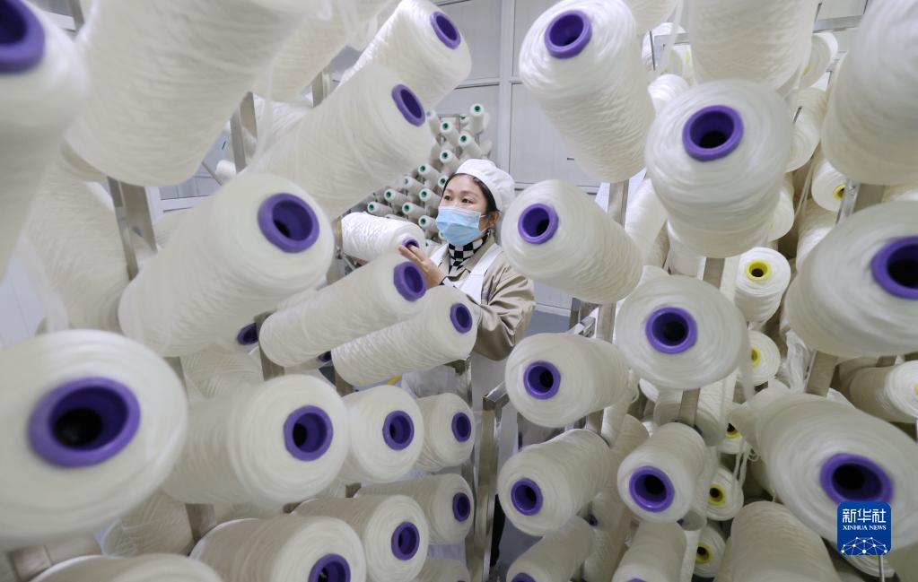 1月3日,在浙江省湖州市德清縣鐘管鎮一家紡織企業(yè),工人在車(chē)間作業(yè)。