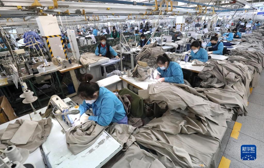 1月3日,在河北省石家莊市井陘縣一家服裝企業(yè),工人在生產(chǎn)線(xiàn)上工作。