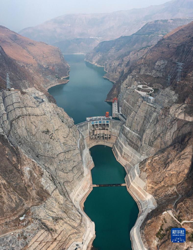 地跨四川省會(huì )東縣和云南省祿勸縣的烏東德水電站,該電站總裝機容量1020萬(wàn)千瓦(無(wú)人機照片,1月3日攝)。