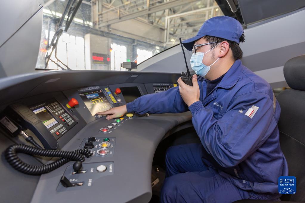 1月3日,在上海虹橋動(dòng)車(chē)運用所,動(dòng)車(chē)組機械師與車(chē)下作業(yè)人員進(jìn)行溝通,開(kāi)展制動(dòng)試驗。