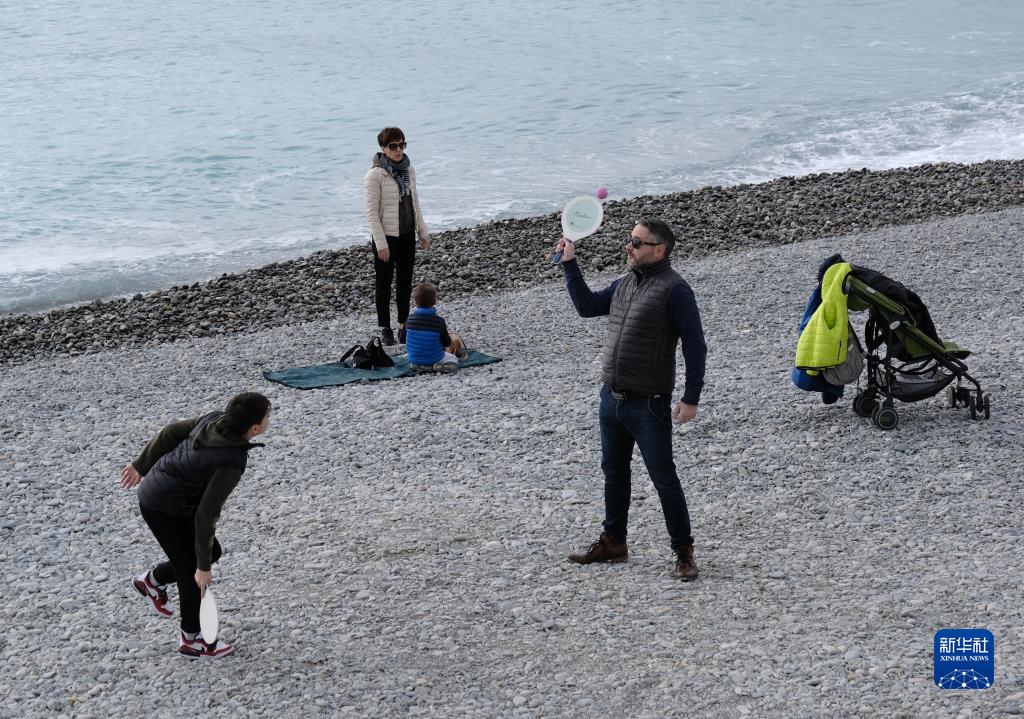 1月3日,人們在法國南部城市尼斯的海邊休閑。