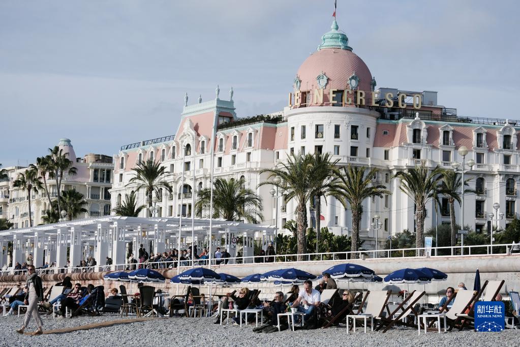 1月3日,人們在法國南部城市尼斯的海邊休閑。