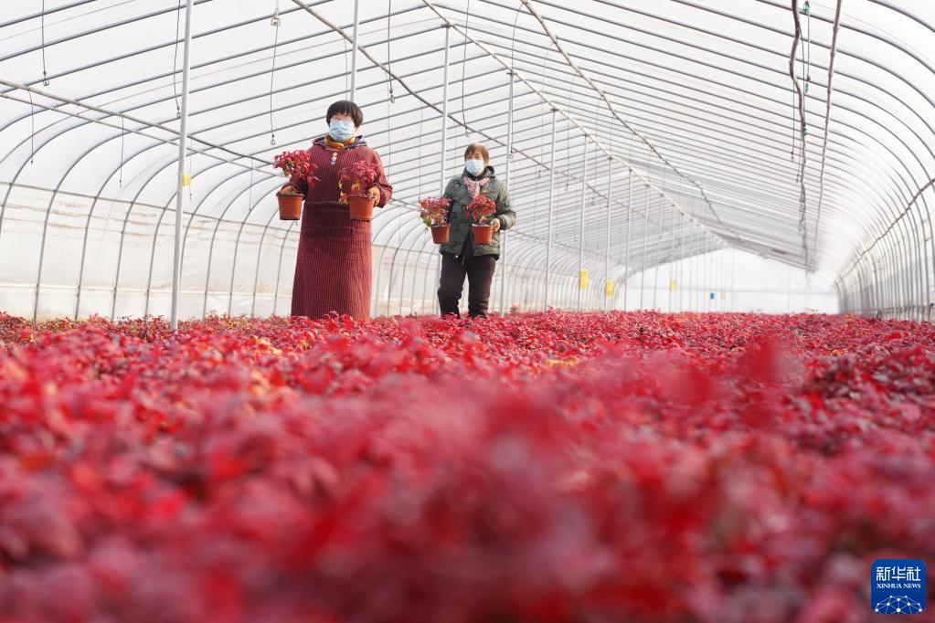 1月4日,河北省邢臺市內丘縣一家農業(yè)科技股份有限公司的員工在大棚里搬運南天竹。