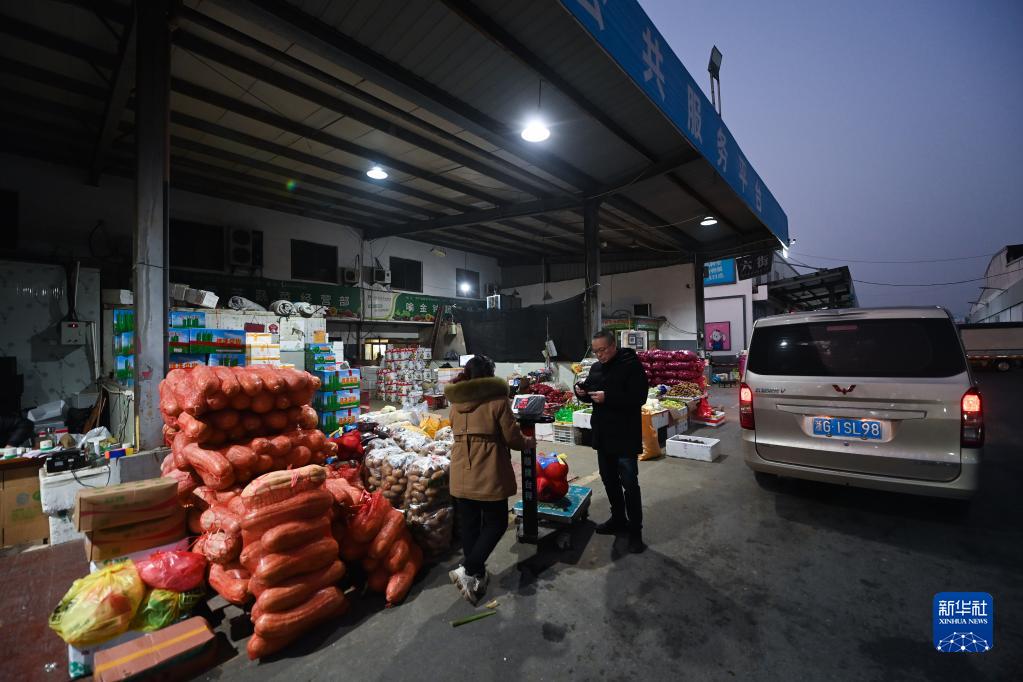 1月4日,商戶(hù)在浙江金華農產(chǎn)品批發(fā)市場(chǎng)進(jìn)貨。
