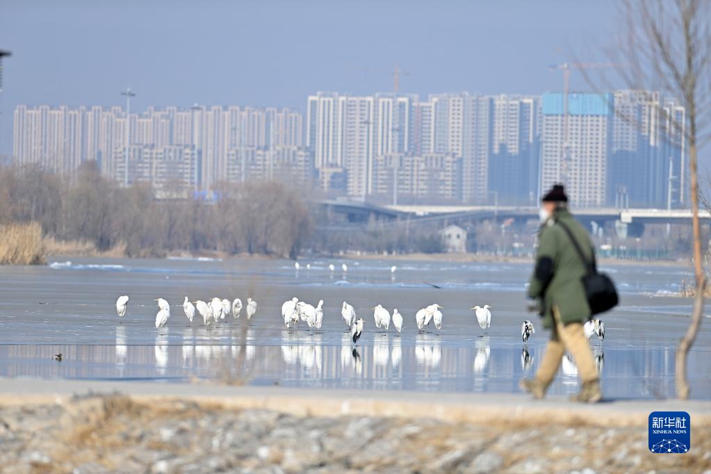 1月4日,水鳥(niǎo)在太原市汾河棲息。
