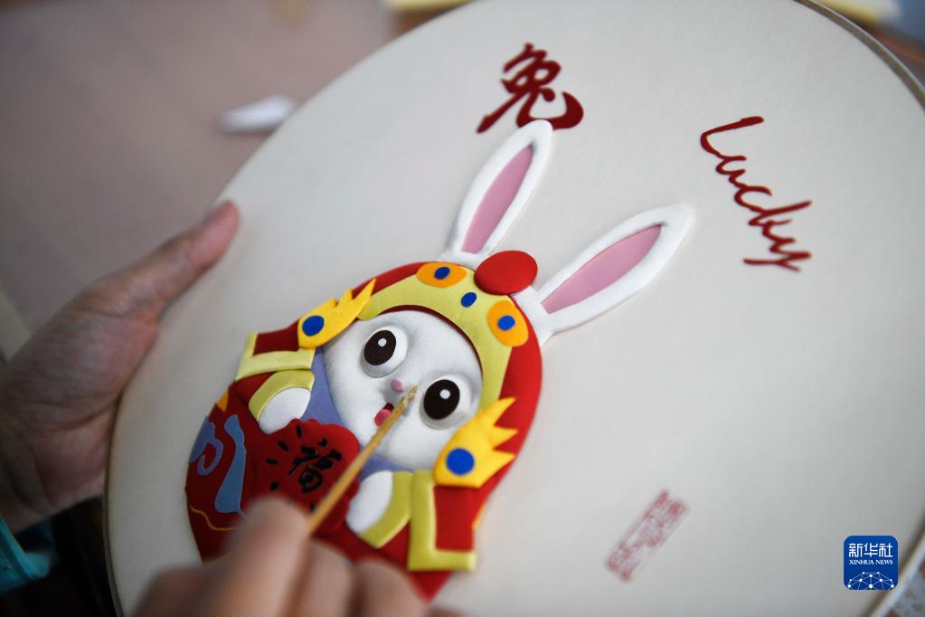 臘月里,河北省豐寧滿(mǎn)族自治縣布糊畫(huà)手工藝人以兔為主題,制作憨態(tài)可掬、萌味十足的兔年主題布糊畫(huà),喜迎新春佳節。布糊畫(huà)是國家級非物質(zhì)文化遺產(chǎn),以綾羅綢緞等面料為主,在滿(mǎn)族傳統工藝“補花”的基礎上,取繪畫(huà)、浮雕、堆繡、剪紙、裱糊、布貼畫(huà)等傳統工藝精華結為一體,呈現出浮雕立體的效果。