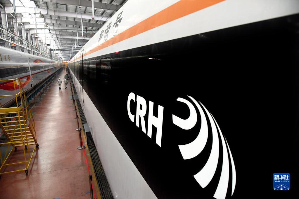 1月4日,一列檢修完畢的和諧號動(dòng)車(chē)組在車(chē)庫內等候發(fā)運。