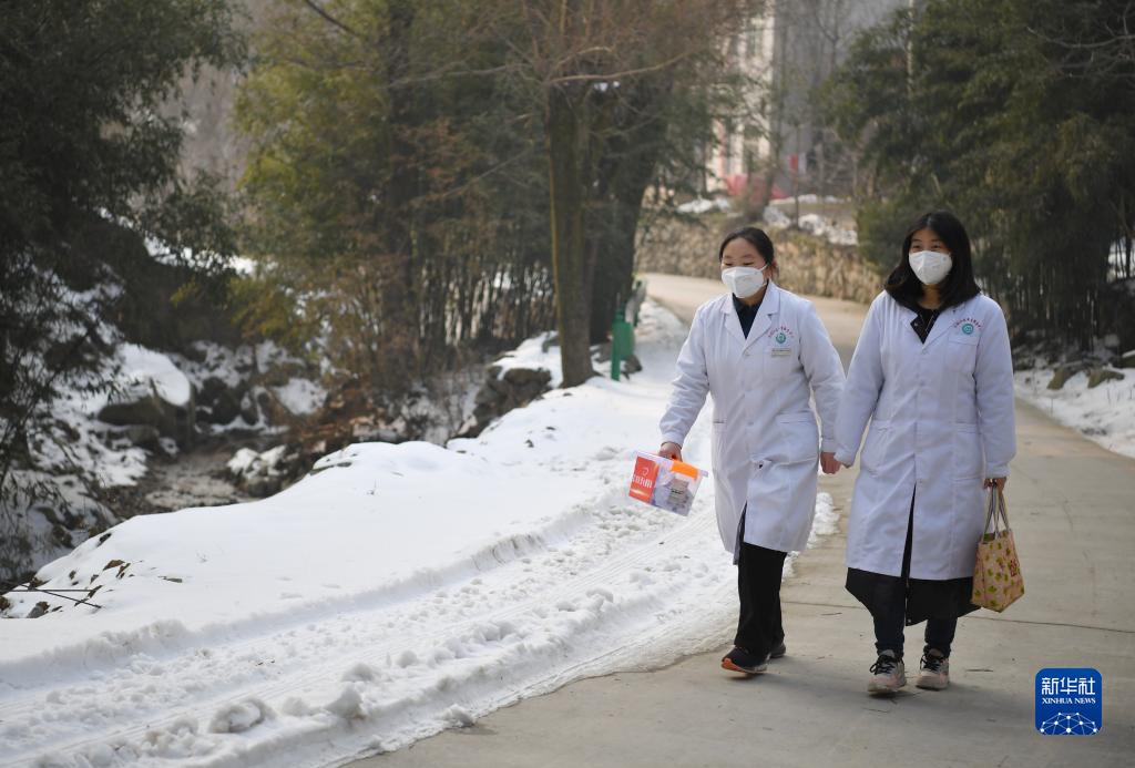 1月3日,西安市長(cháng)安區灤鎮街道社區衛生服務(wù)中心醫生崔思語(yǔ)(右)和高丹陽(yáng)在灃峪村內走訪(fǎng)住戶(hù)。