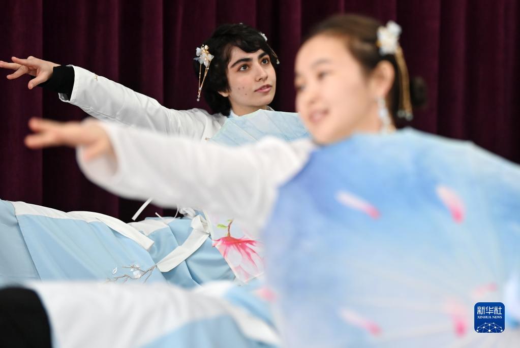當日,天津大學(xué)國際教育學(xué)院的留學(xué)生為參加“校園春晚”加緊排練文藝節目。他們身穿漢服演唱中文歌曲,排練傳統古典舞蹈等節目,感受中國傳統文化的魅力。