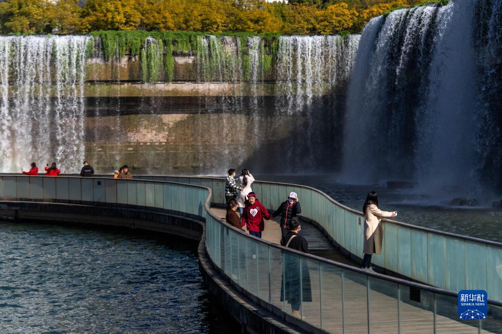 當日,云南昆明天氣晴好,游客來(lái)到位于昆明北部山水新區的昆明瀑布公園參觀(guān)游覽。公園內的人工瀑布落差約12.5米,寬幅約400米。