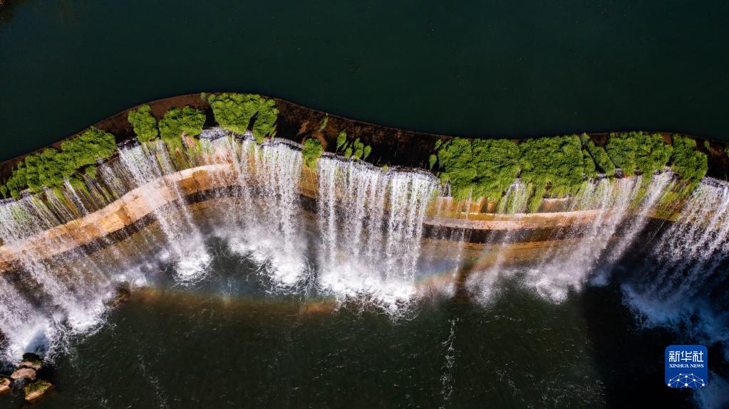 當日,云南昆明天氣晴好,游客來(lái)到位于昆明北部山水新區的昆明瀑布公園參觀(guān)游覽。公園內的人工瀑布落差約12.5米,寬幅約400米。