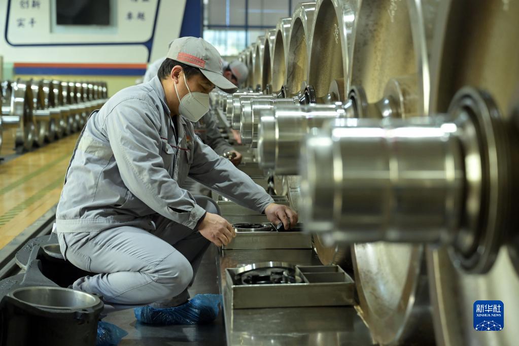 1月4日,在中國鐵路上海局集團有限公司合肥車(chē)輛段合肥客車(chē)整備場(chǎng),工作人員對旅客列車(chē)車(chē)輪進(jìn)行整修。