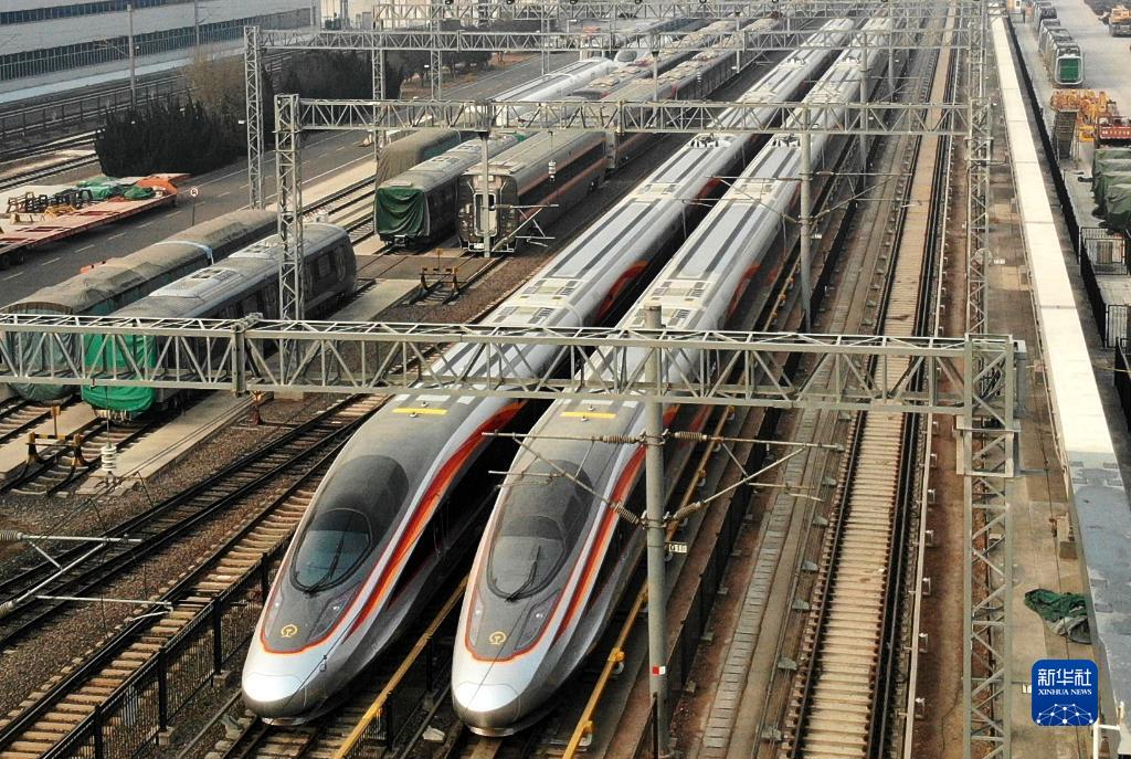 1月4日拍攝的兩列“復興號”智能動(dòng)車(chē)組(無(wú)人機照片)。
