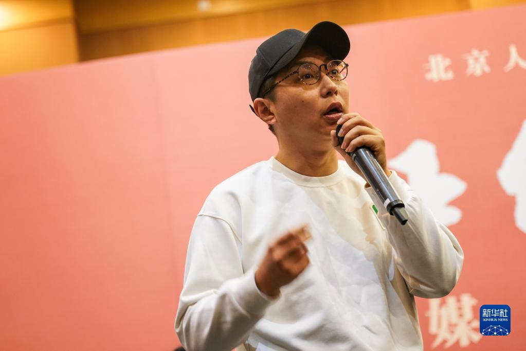 1月5日,在北京人藝排練廳,導演閆銳在媒體見(jiàn)面會(huì )現場(chǎng)與記者交流。