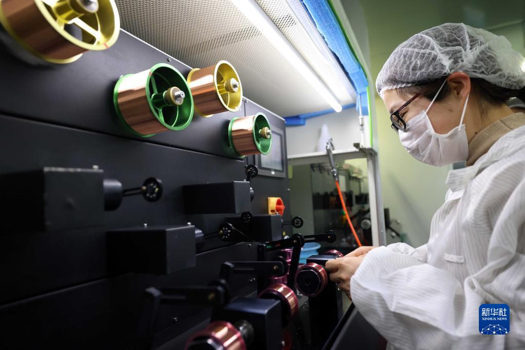 1月5日,在合肥市瑤海區長(cháng)三角數字科技示范園,安徽華晶微電子材料科技有限公司的員工在集成電路鍵合絲生產(chǎn)線(xiàn)上作業(yè)。