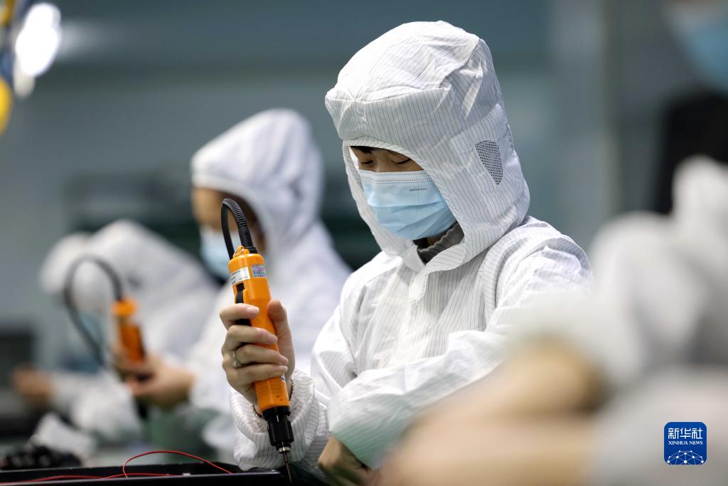 1月5日,在合肥市瑤海區長(cháng)三角數字科技示范園,合肥統旭智慧科技有限公司的員工在智慧顯示屏生產(chǎn)線(xiàn)上作業(yè)。