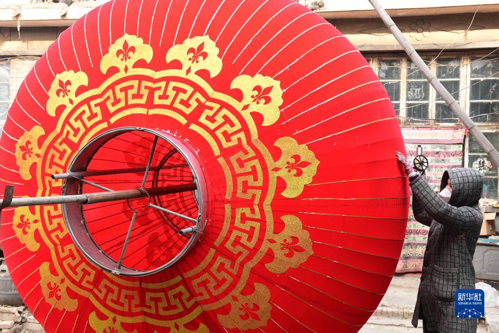 1月5日,在河北省石家莊市藁城區屯頭村,一家宮燈企業(yè)的工人制作大型宮燈。