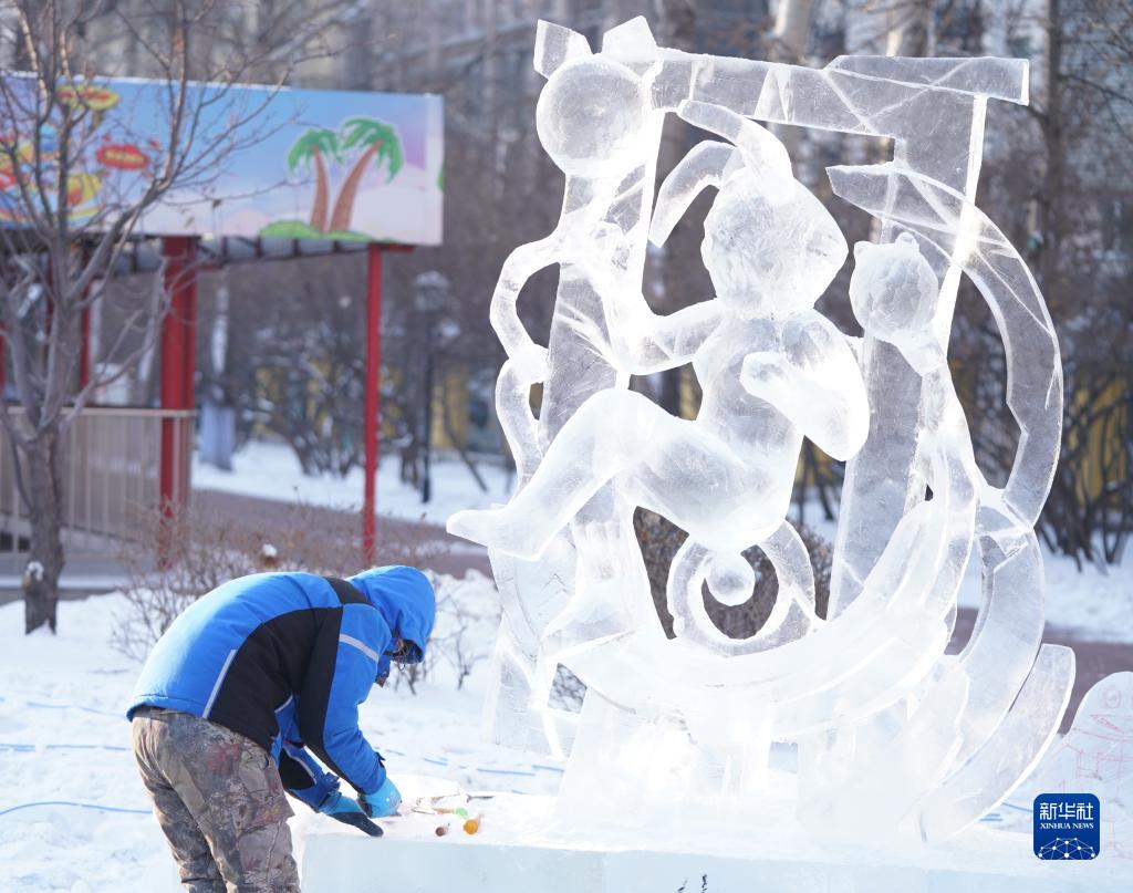 這是獲得金獎的冰雕作品《人工智能》(1月5日攝)。