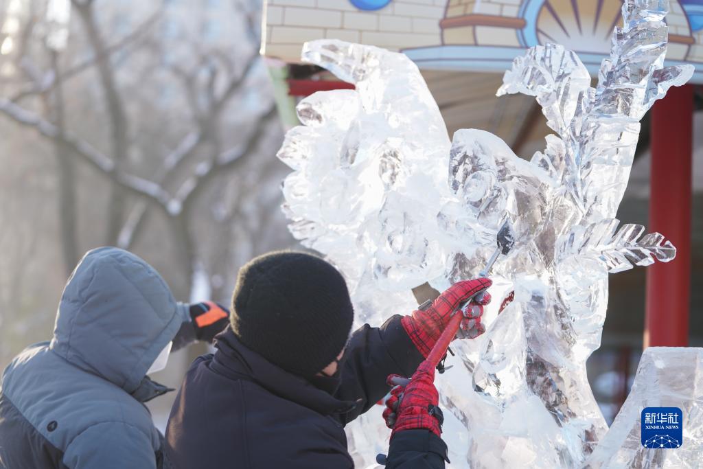 這是獲得銅獎的冰雕作品《花開(kāi)滿(mǎn)鏡》(1月5日攝)。新華社記者 王松 攝