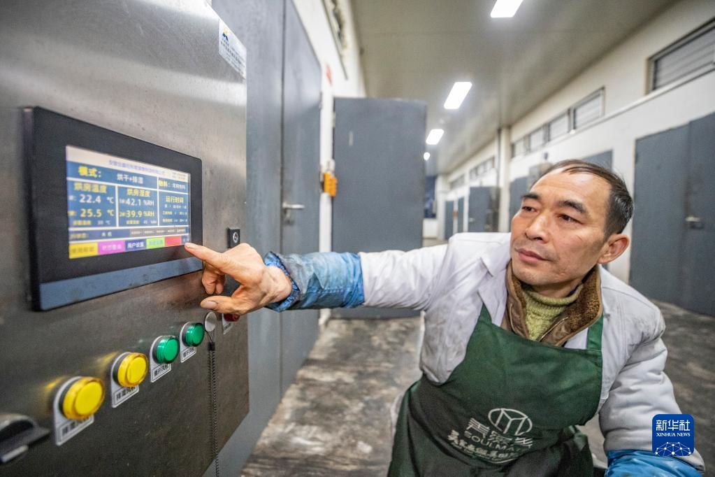 1月4日,在重慶市城口縣坪壩鎮新華村重慶美綴美食品有限公司,工人操作控制炕房?jì)鹊暮銣睾銤裣到y。