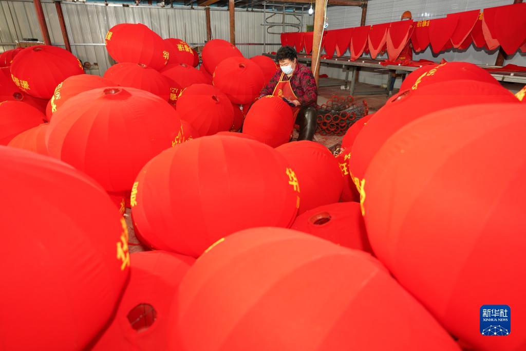 春節臨近,河北省沙河市十里亭鎮曹章村燈籠制作工坊的工人忙著(zhù)趕制大紅燈籠,供應節日市場(chǎng)。曹章村是遠近聞名的“燈籠制作專(zhuān)業(yè)村”,燈籠生產(chǎn)成為當地農民增收的重要途徑。