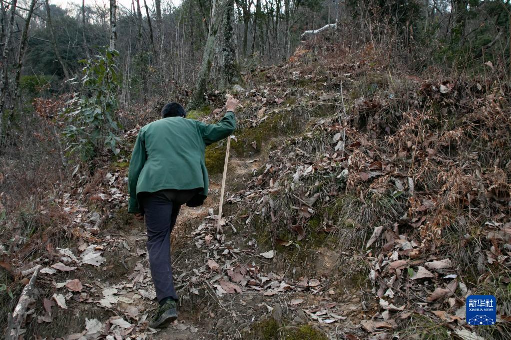 楊忠錄在大熊貓國家公園甘肅省片區裕河園區的密林中巡山(1月4日攝)。