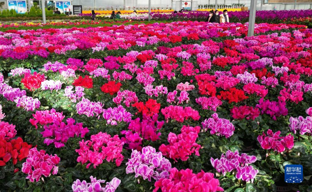 春節臨近,甘肅省臨夏回族自治州鮮花市場(chǎng)迎來(lái)銷(xiāo)售旺季,人們選購年宵花卉,迎接新春佳節的到來(lái)。