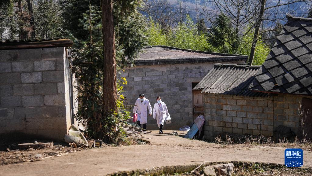 1月6日,醫務(wù)工作者在六盤(pán)水市鐘山區金盆苗族彝族鄉雙塘村走訪(fǎng)。