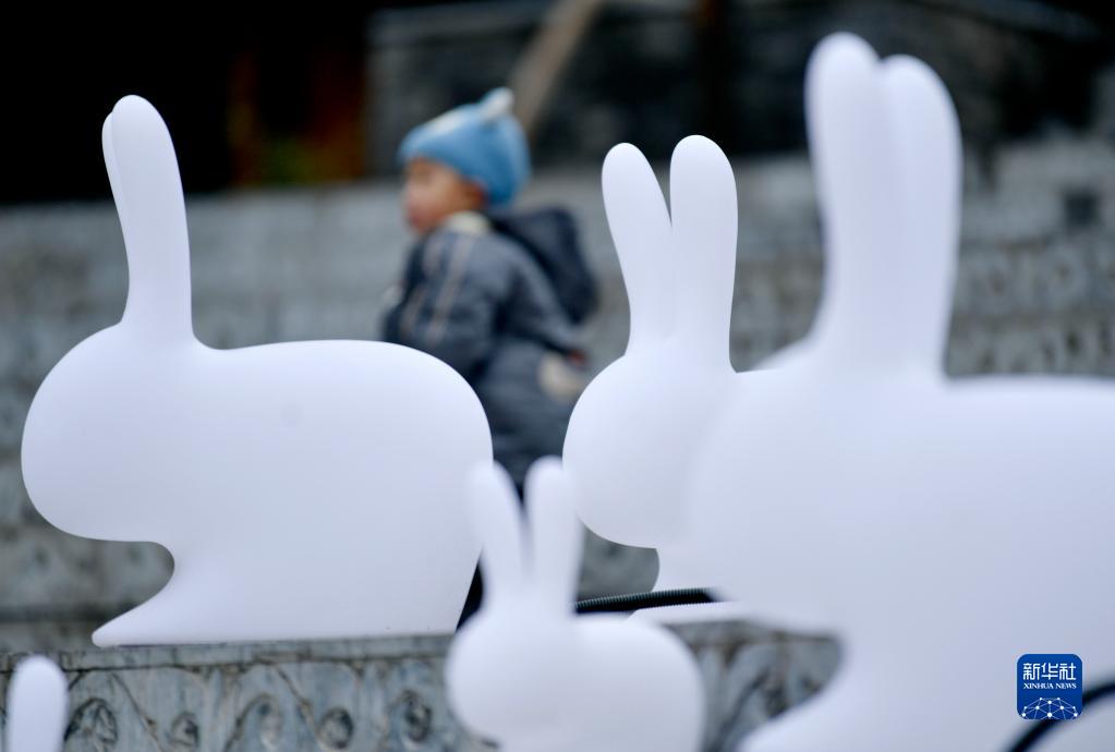 春節將近,湖北省恩施土家族苗族自治州宣恩縣在縣城公園、廣場(chǎng)、街巷等處安放數百只造型可愛(ài)的兔子彩燈,營(yíng)造迎接新春佳節的氛圍。