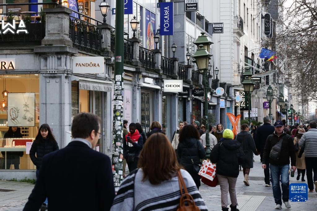 1月3日,行人在比利時(shí)布魯塞爾的一條商業(yè)街上行走。