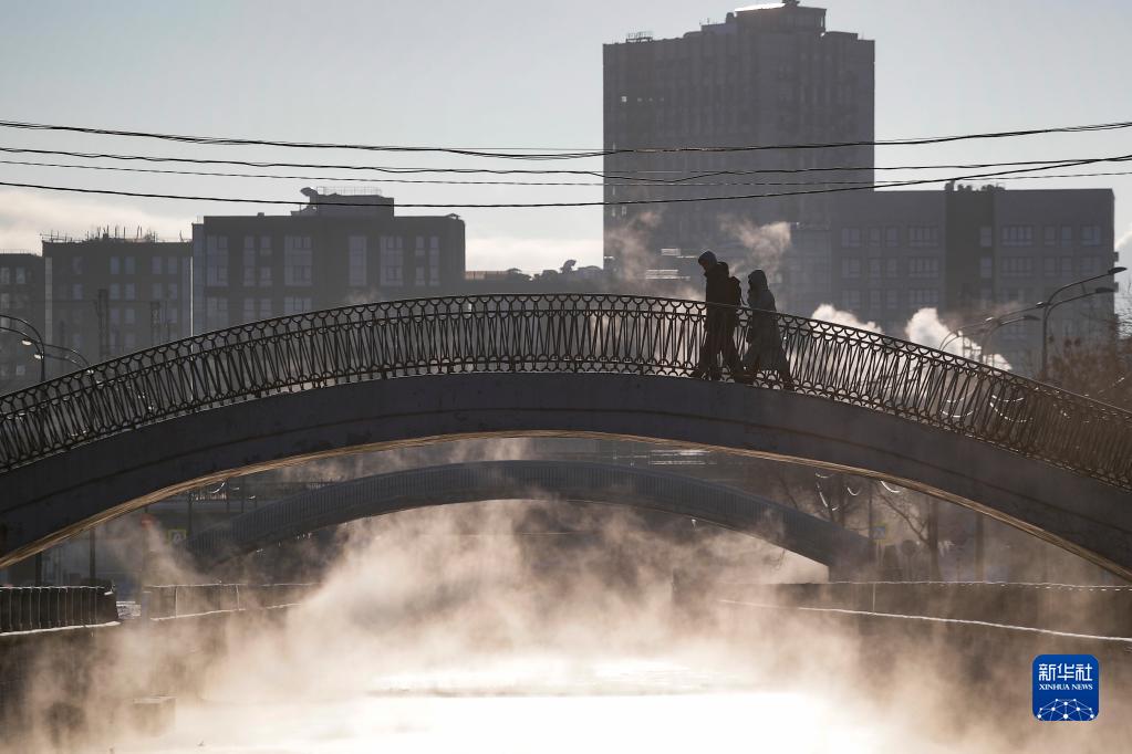 1月6日,在俄羅斯首都莫斯科,行人從橋上走過(guò)。