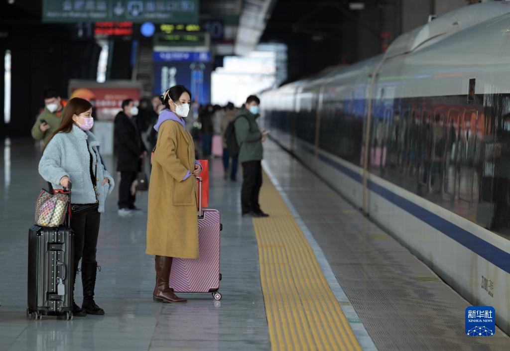 1月7日,旅客在合肥南站乘車(chē)。