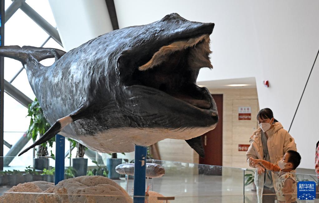 1月7日,一名兒童在家長(cháng)陪同下參觀(guān)國家海洋博物館。