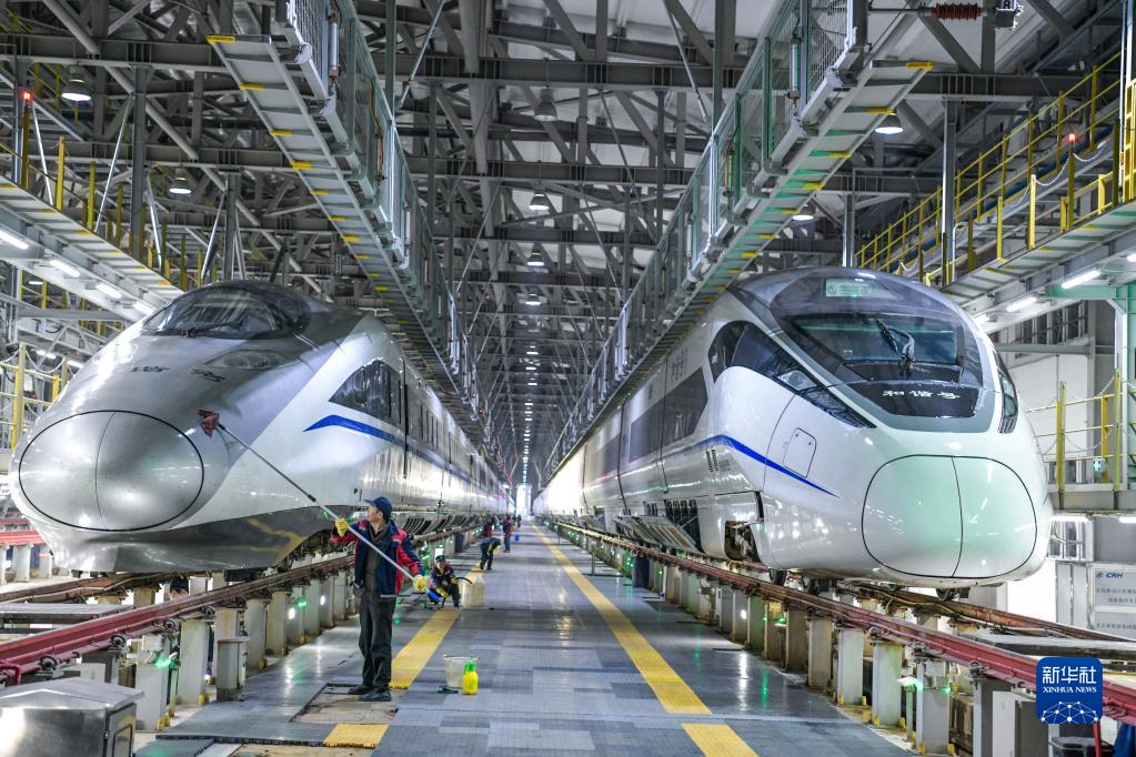 2023年春運于1月7日啟動(dòng)。中國鐵路成都局集團有限公司貴陽(yáng)車(chē)輛段貴陽(yáng)北動(dòng)車(chē)運用所的工作人員對動(dòng)車(chē)組列車(chē)進(jìn)行檢修、保養、清潔,確保春運期間列車(chē)運行安全和旅客乘車(chē)環(huán)境舒適。