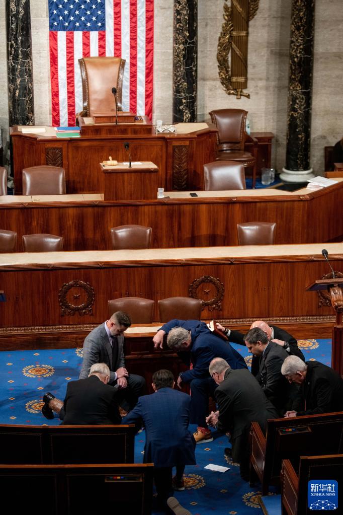 1月6日,在美國華盛頓國會(huì ),一些議員在眾議院議長(cháng)選舉表決前祈禱。