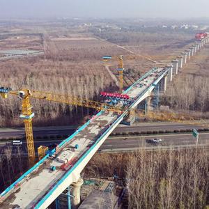 這是完成合龍施工的合新鐵路安徽段跨滬陜高速連續梁(1月7日,無(wú)人機照片)。