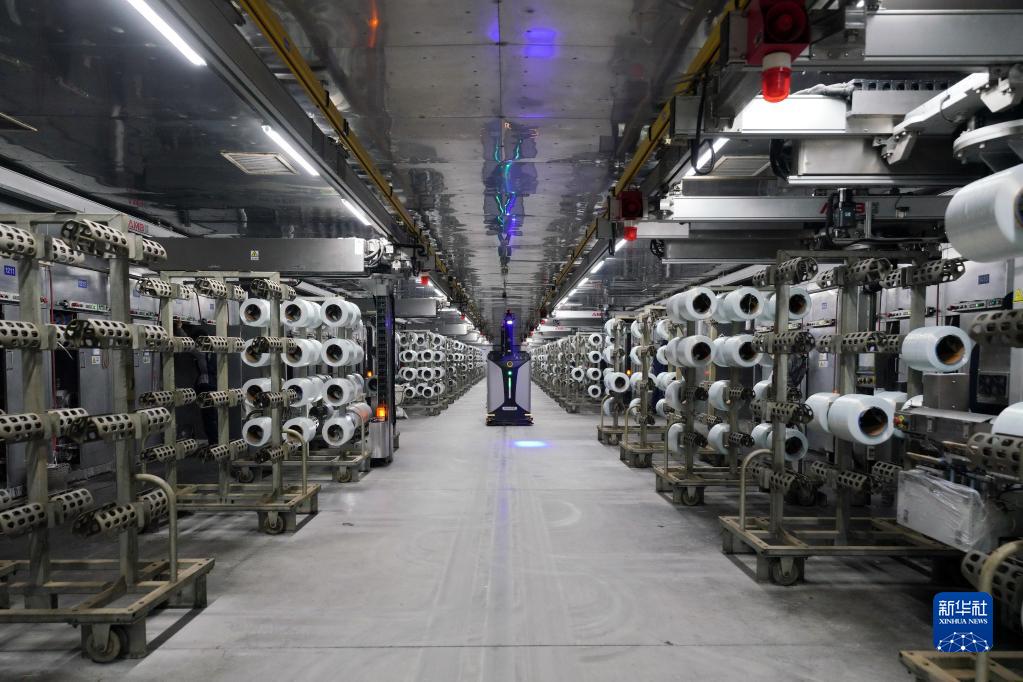 1月6日,智能無(wú)人搬運車(chē)在沙河市一家玻璃產(chǎn)品生產(chǎn)企業(yè)的車(chē)間運輸玻璃纖維產(chǎn)品。